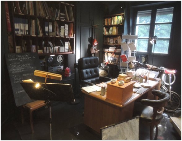 La salle de musique met en scène les multiples instruments que l’artiste pratiquait et bricolait. Le piano magique réserve bien des surprises aux visiteurs !