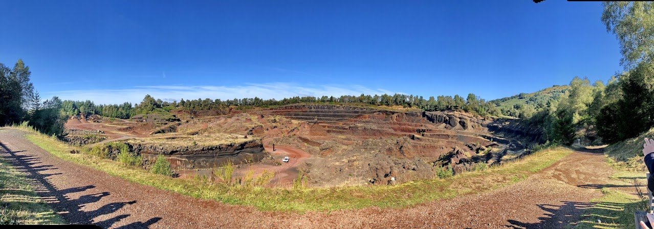 Ainsi, une gigantesque cavité de 10 hectares s’ouvre en entonnoir sur le cœur du volcan, grâce aux 11 paliers d’exploitation qui en découpent les falaises et laissent apparaître les couleurs et les strates.