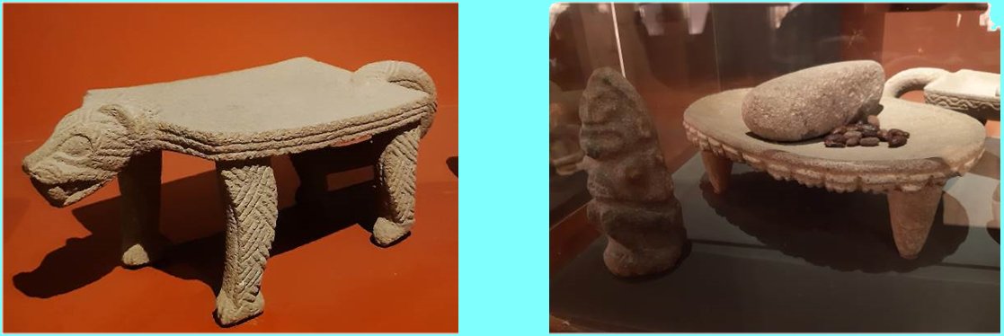 Une vitrine nous indique le broyage avec des instruments dédiés (le métate) ; travail réservé aux femmes.