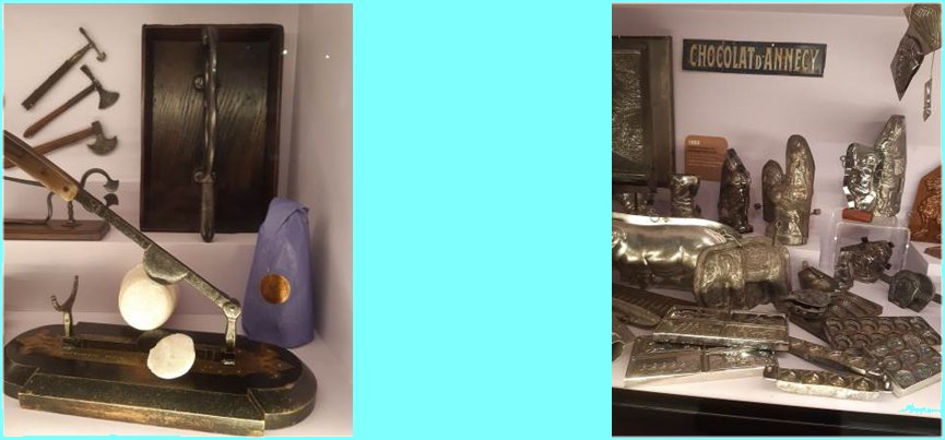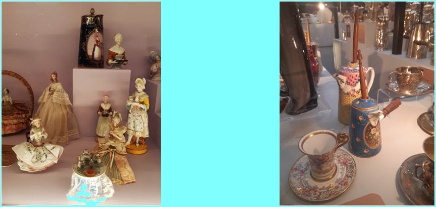 Une vitrine nous montre des objets particuliers (demi-figurines) pour décorer du plus bel effet les chocolatières.