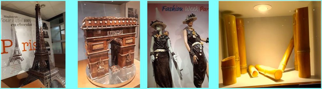 Ne pas oublier les sculptures en chocolat (Tour Eiffel, Arc de triomphe, robes, sacs et souliers féminins).