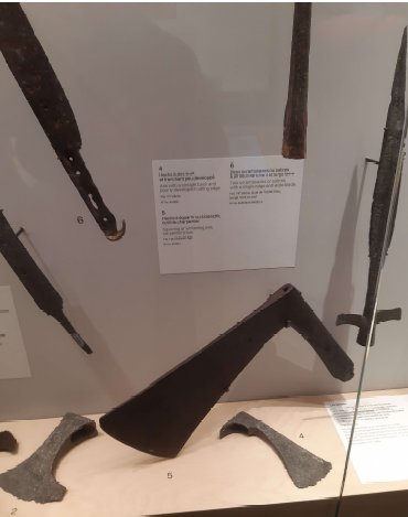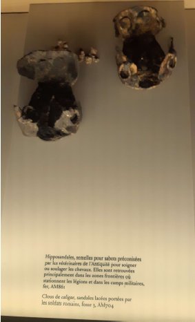 Des vitrines conservent des objets et une paire hipposandales (ancêtre du fer à cheval) nous surprend par son état de conservation.