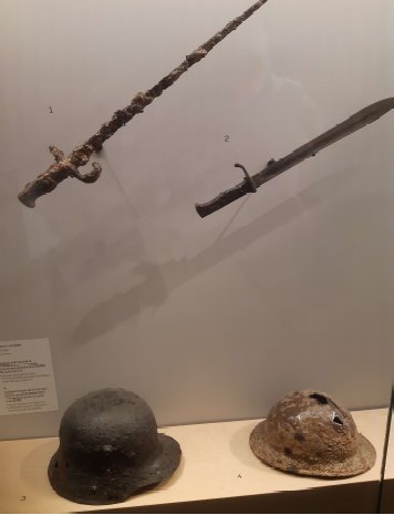Une vitrine « offrandes ou tactiques » rassemble une panoplie d’armes de guerre