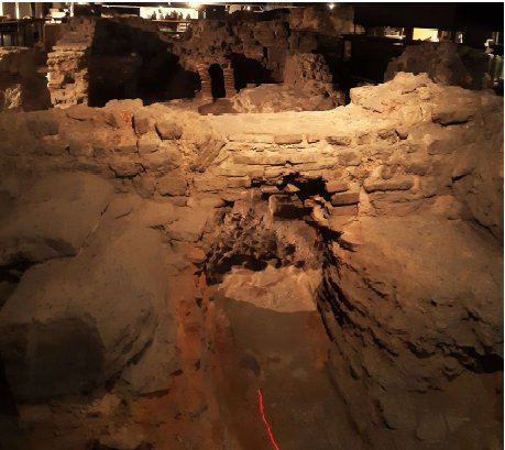 Les pierres présentes sous nos yeux sont la trace du port antique avec son quai de déchargement et son accès au fleuve par un escalier.