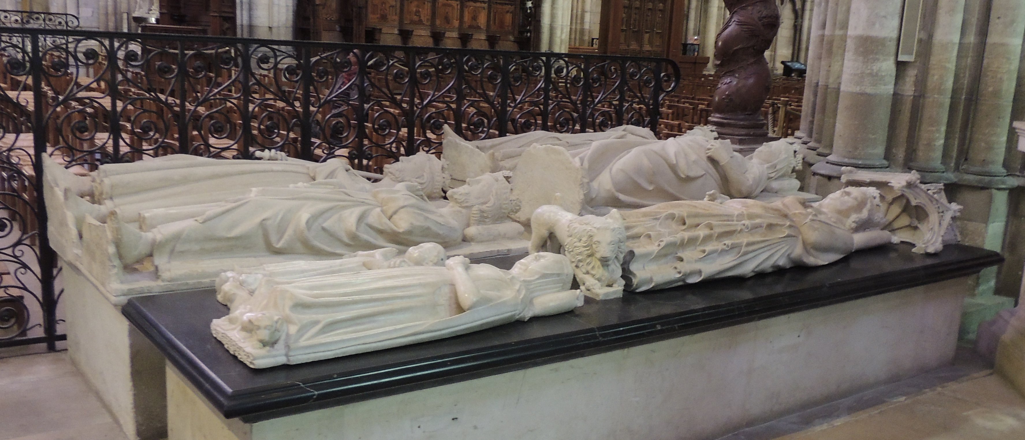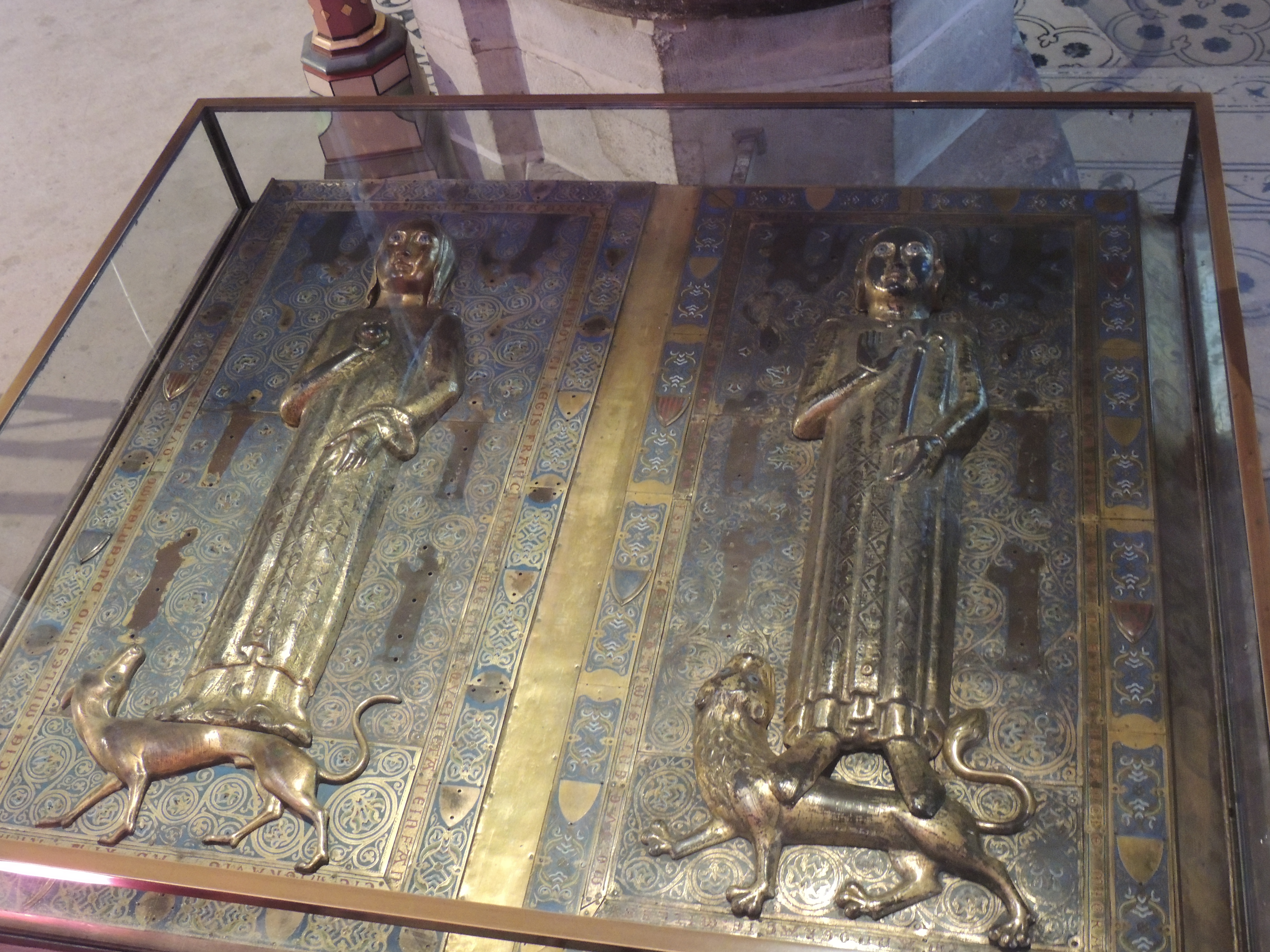 2 gisants (enfants de Saint Louis morts en bas âge). Les tombeaux sont en cuivre (art de l’émail de Limoges avec la technique du champ levé et incrustation d’émaux).