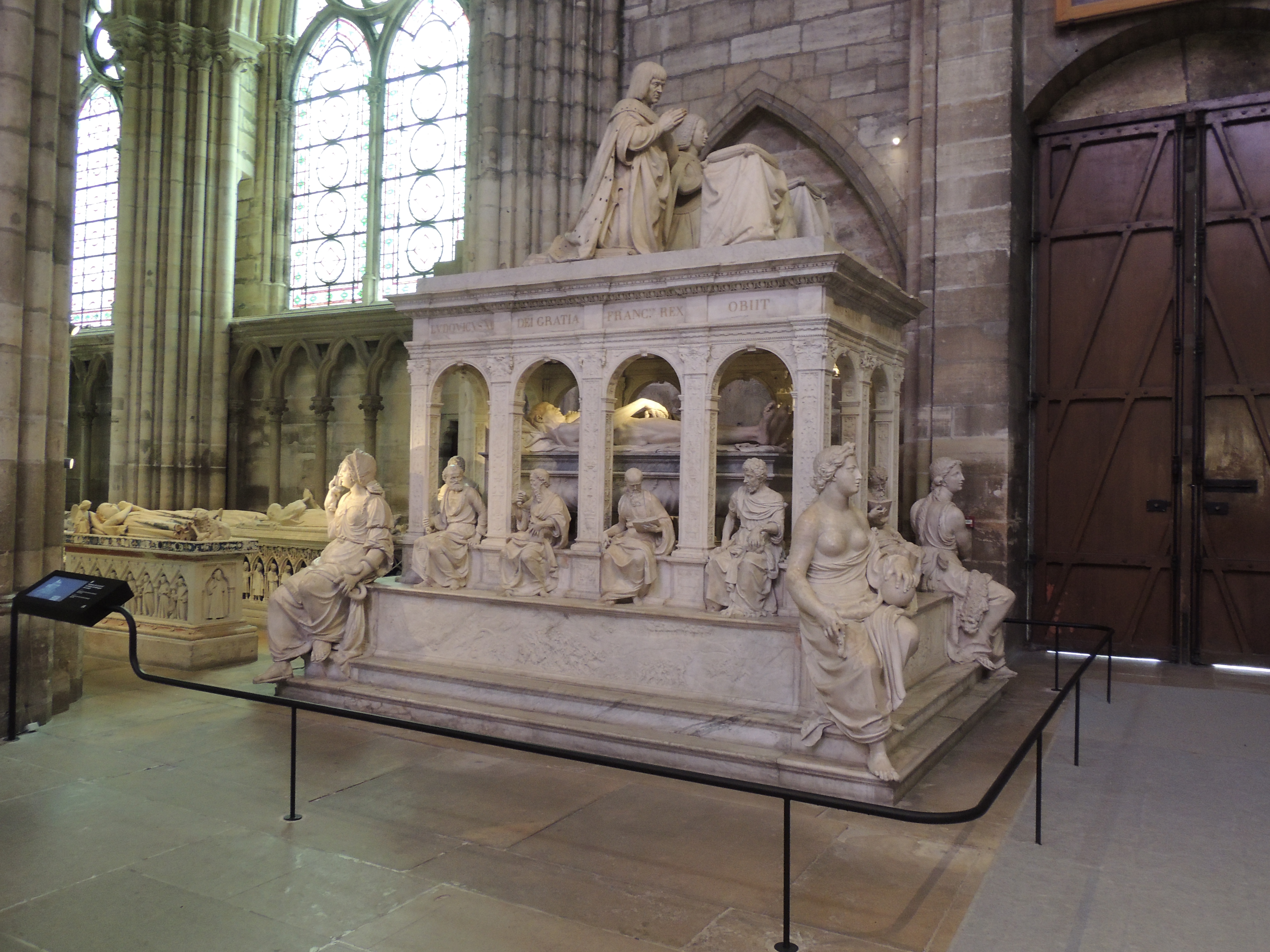 Saint Louis décide que les rois seront inhumés à Saint Denis et, pour montrer la continuité de la dynastie, 16 gisants (capétiens, mérovingiens, carolingiens) sont mis dans le transept sud vers 1263 ; ils sont tournés vers l’est en attendant la résurrection (espérance d’une vie éternelle).
