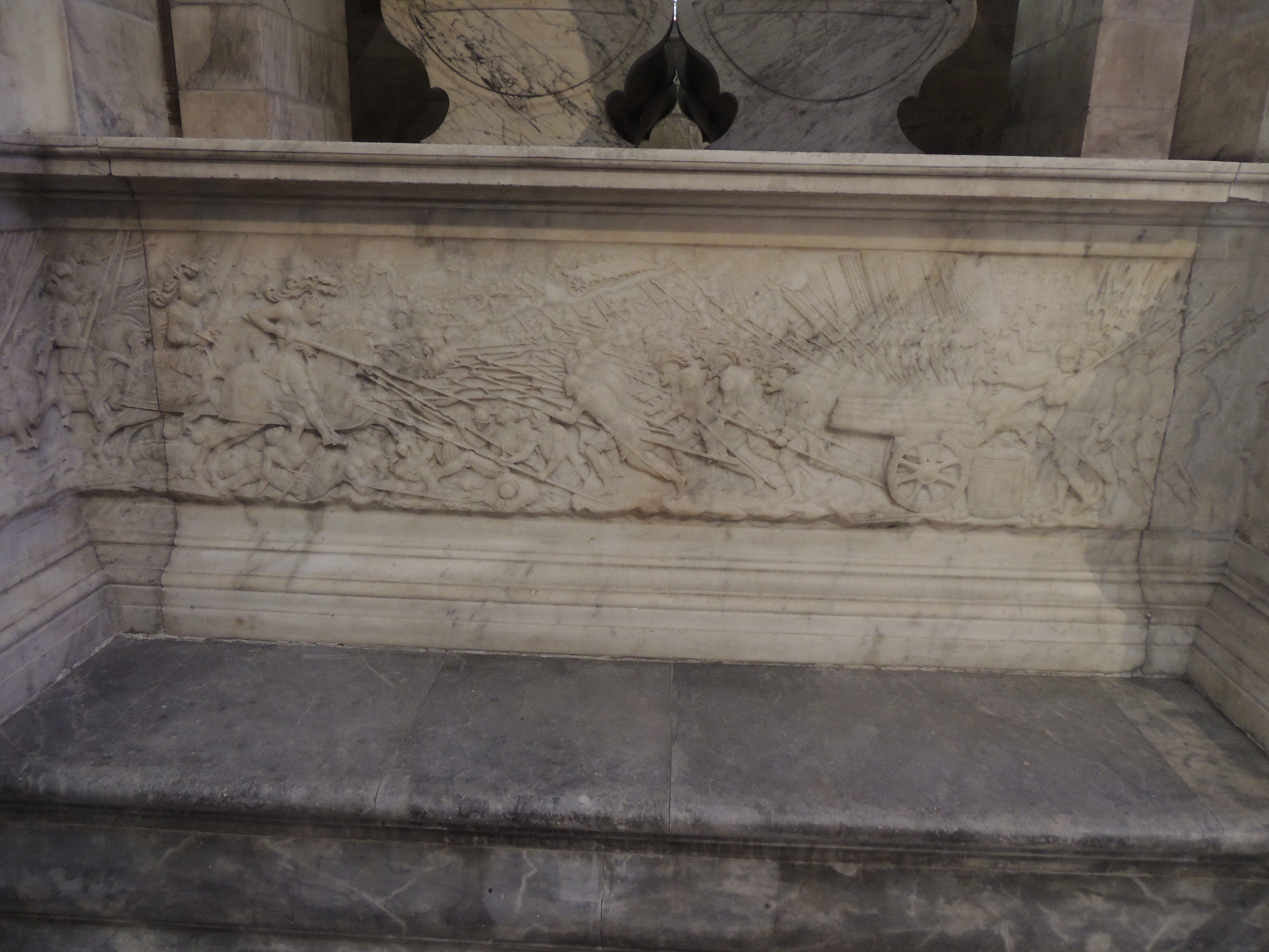 Tombeau monumental (1560-1573) avec des sculptures en bronze d’une exceptionnelle qualité (vertus placées aux angles).