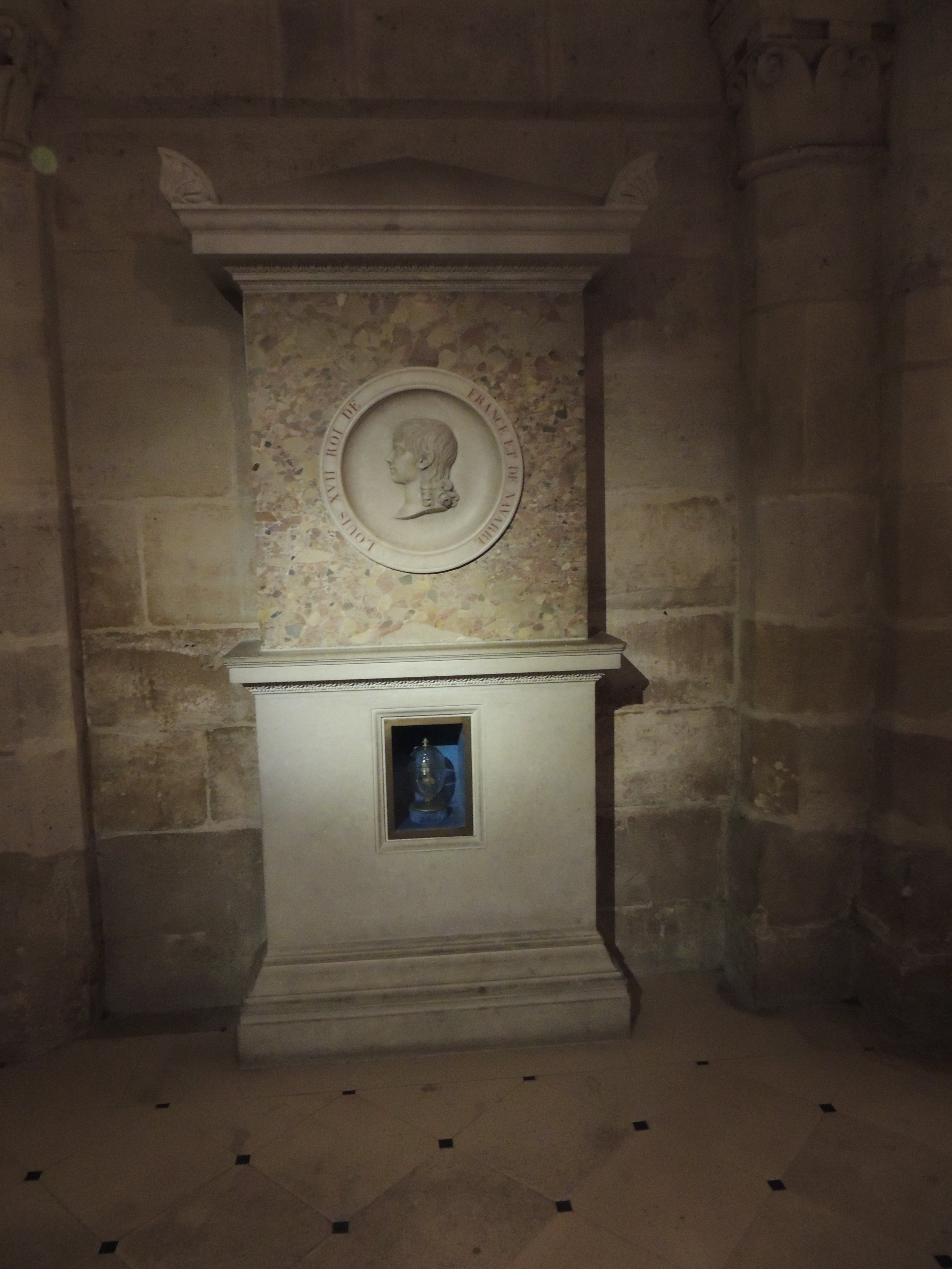 Un monument funéraire avec Louis XVII (fils de Marie Antoinette) est particulièrement intéressant par un cœur protégé dans une urne ; des tests ADN ont confirmé que ce cœur appartient bien à la lignée royale.