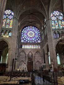Cette prouesse architecturale est de style gothique rayonnant ; admirons la rose sud de 14 m de diamètre, le triforium, les piliers s’élançant sur des voûtes en arcs brisés, et les croisées d’ogives.