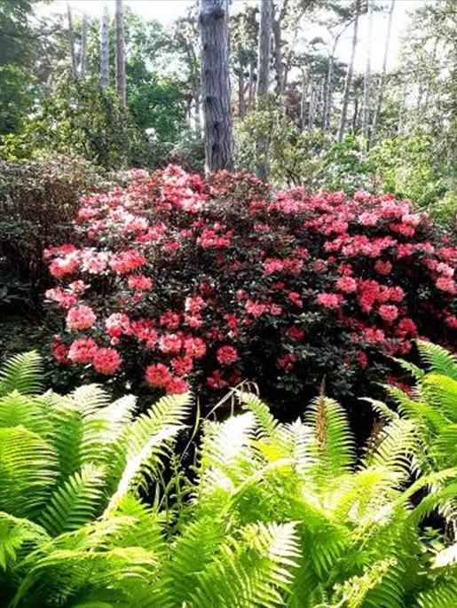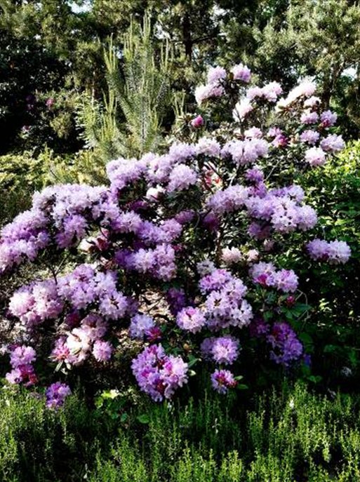 Vous pouvez apprécier ci-dessous iris et rhododendrons au printemps.