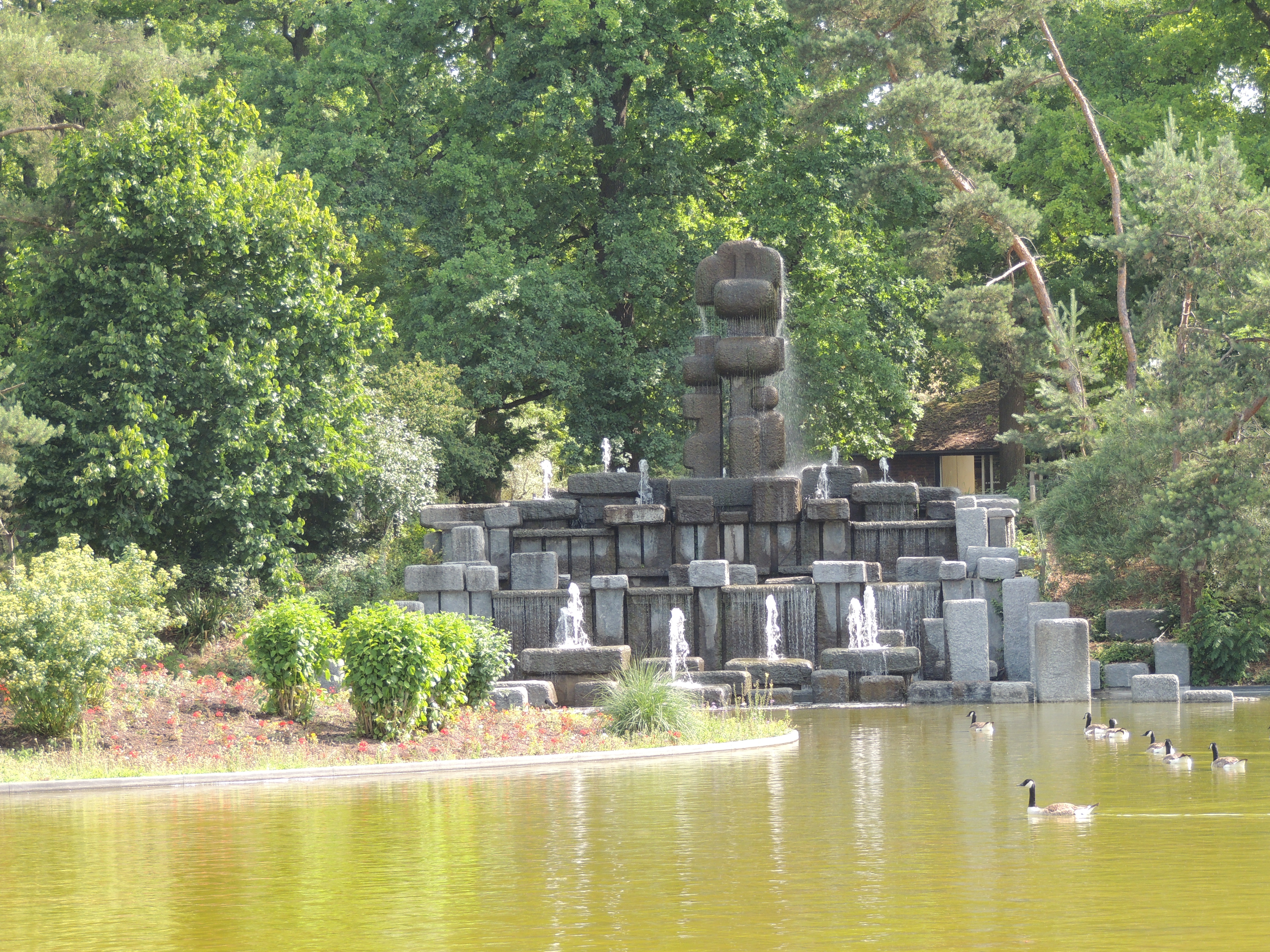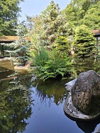 Nous avons pu voir une prairie de bulbes, un miroir d’eau avec sa fontaine, la vallée des fleurs, une pinède, des scènes de spectacles, le pavillon des bonsaïs, des plantes médicinales, des plantes aromatiques, des espaces pédagogiques, et leur pavillons, des azalées, des rhododendrons …