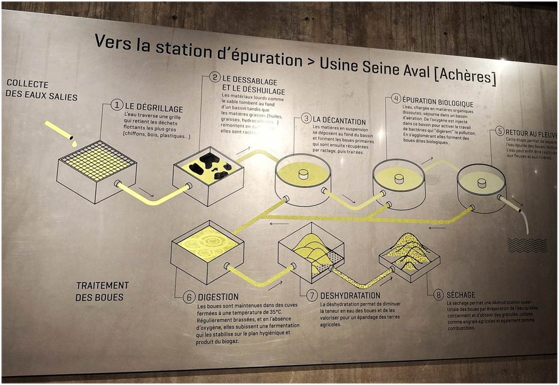 Devant un tableau explicatif, nous découvrons le collecteur principal, l’égout élémentaire, le collecteur secondaire et l’émissaire.